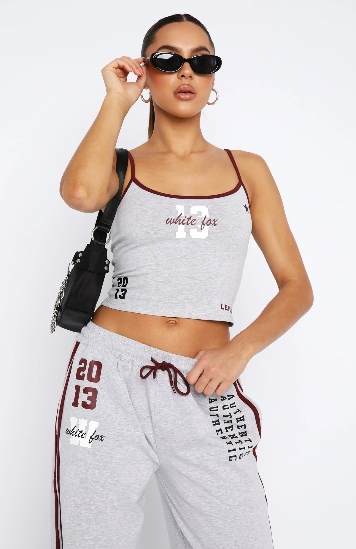 The top for that all day, everyday kind of cool with a sporty chic style to show just the right amount of skin. The All Star Season Singlet Grey Marle features thin adjustable straps, scoop neckline, cropped length, stretch jersey fabric. You can style this tank multiple different ways. We love with low rise denim and slides for an off-duty model look.Â