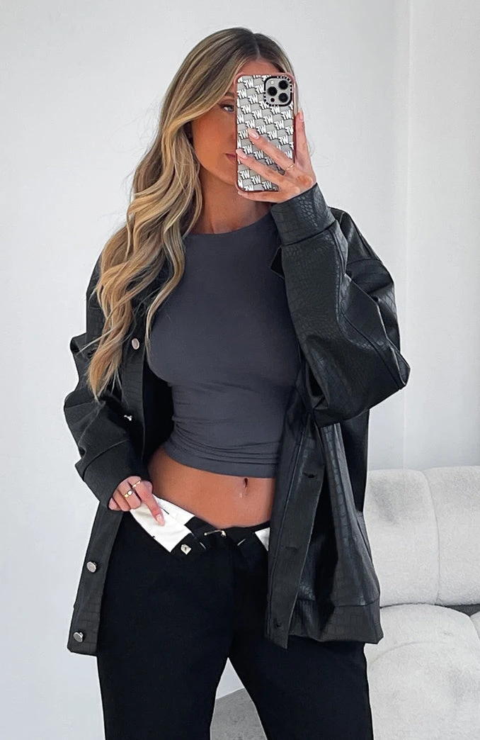 The Cold Heart PU Jacket in Black is this seasons must-have! Featuring long sleeves, front button closure, collared neckline, front pockets and relaxed fit. We love this paired with gold accessories and knee-high boots for a look we love!
