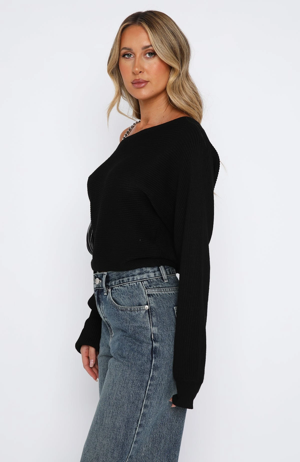 We are in love with this cosy sweater for your new season look. The Cover Me Up Sweater Black features a ribbed fabric, wide neckline, designed to sit just off the shoulder, ribbed cuffs, thick, stretch fabric and an oversized fit. Wear with wide-leg bottoms and slides to complete the look.