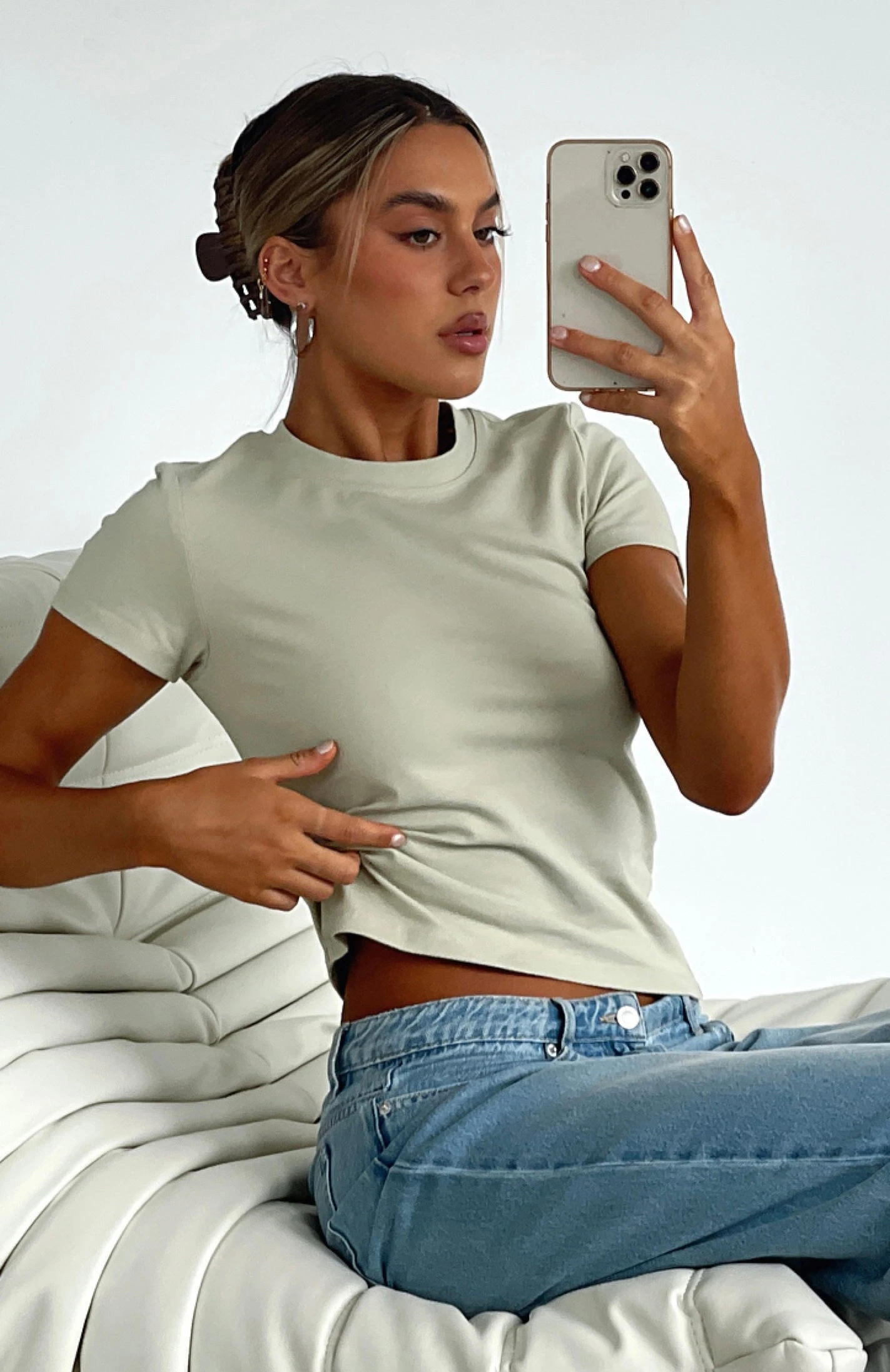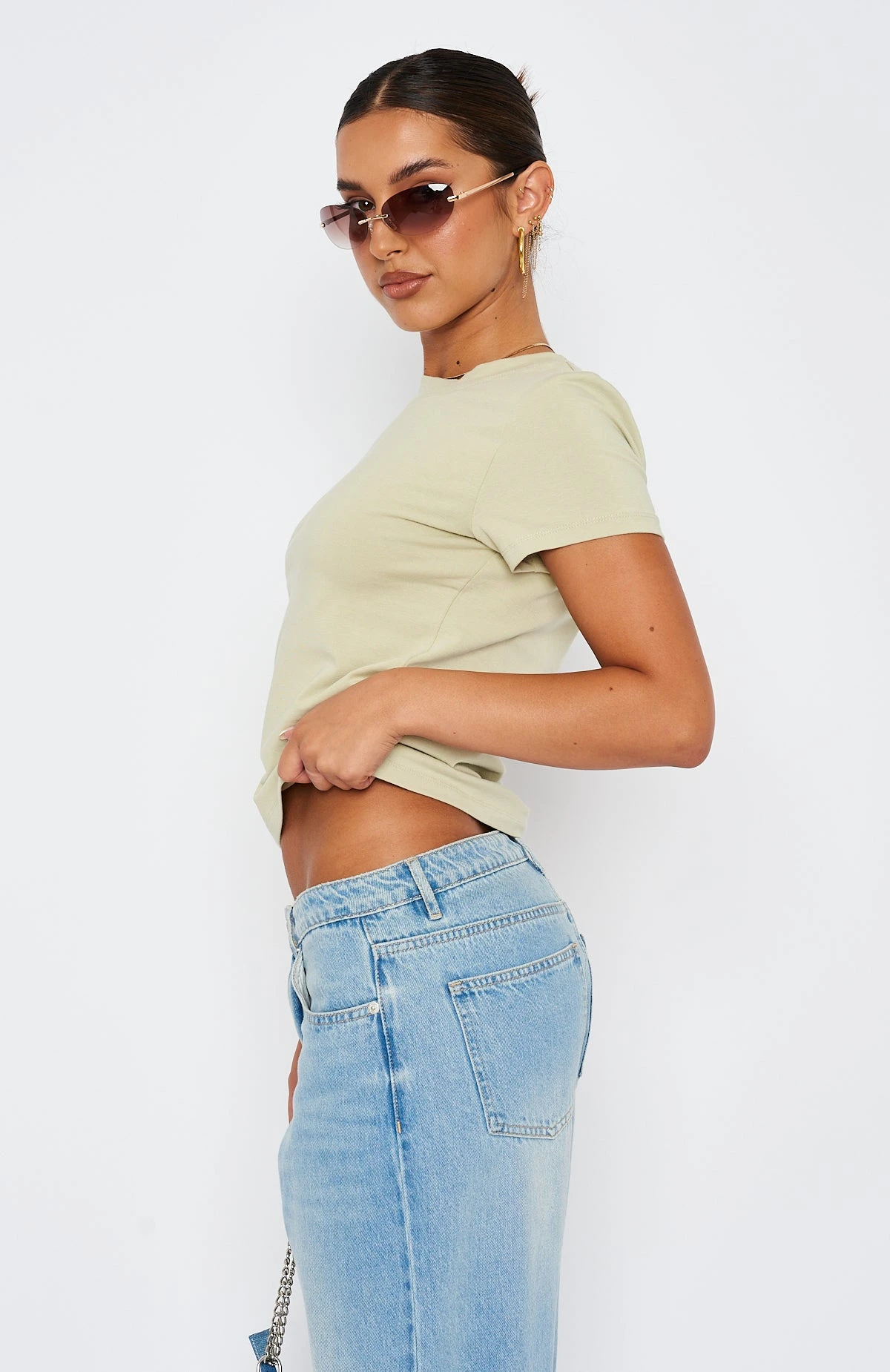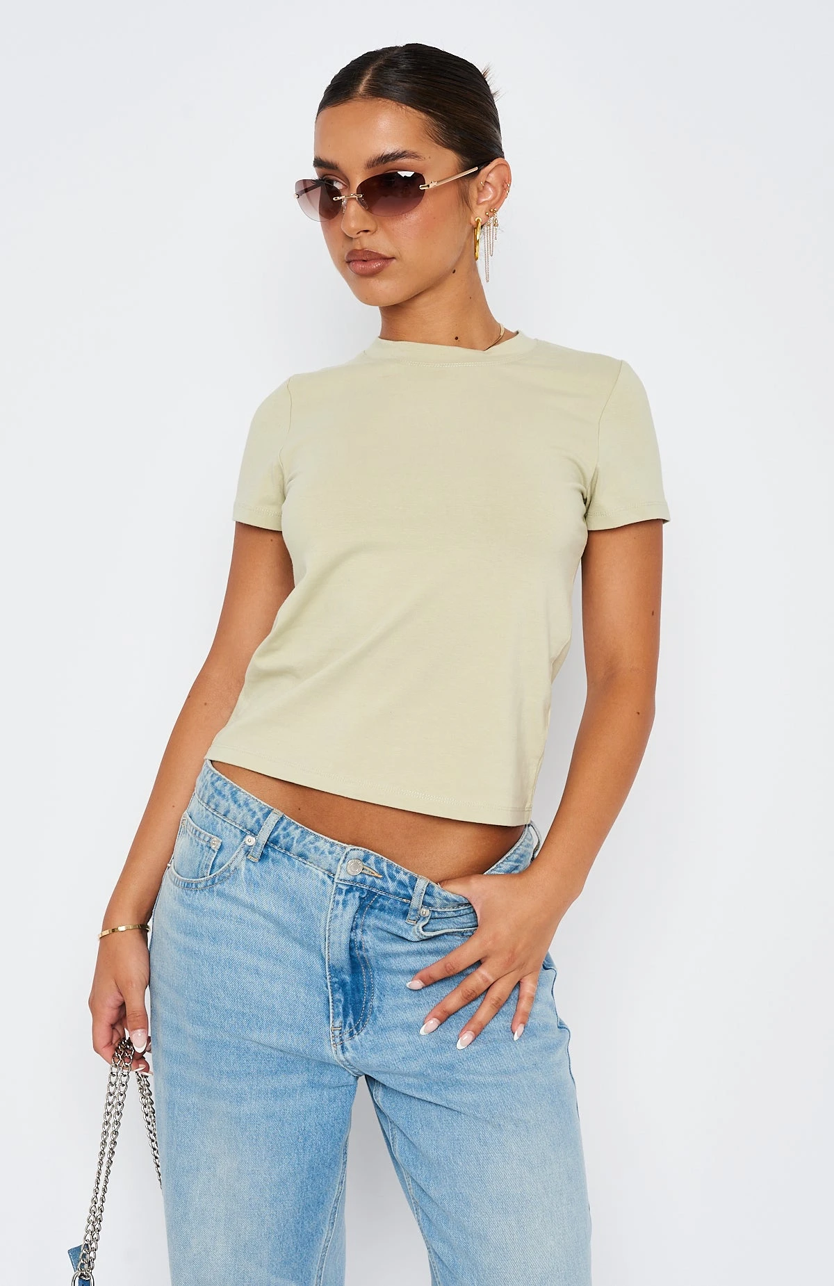 The Figure It Out Tee in Sage is a wardrobe staple that every babe needs! This cropped top has a high scooped neckline, shorts sleeves and soft stretch fabric. Pair with your favourite pair of White Fox Denim Jeans and sneakers for the perfect off-duty look!