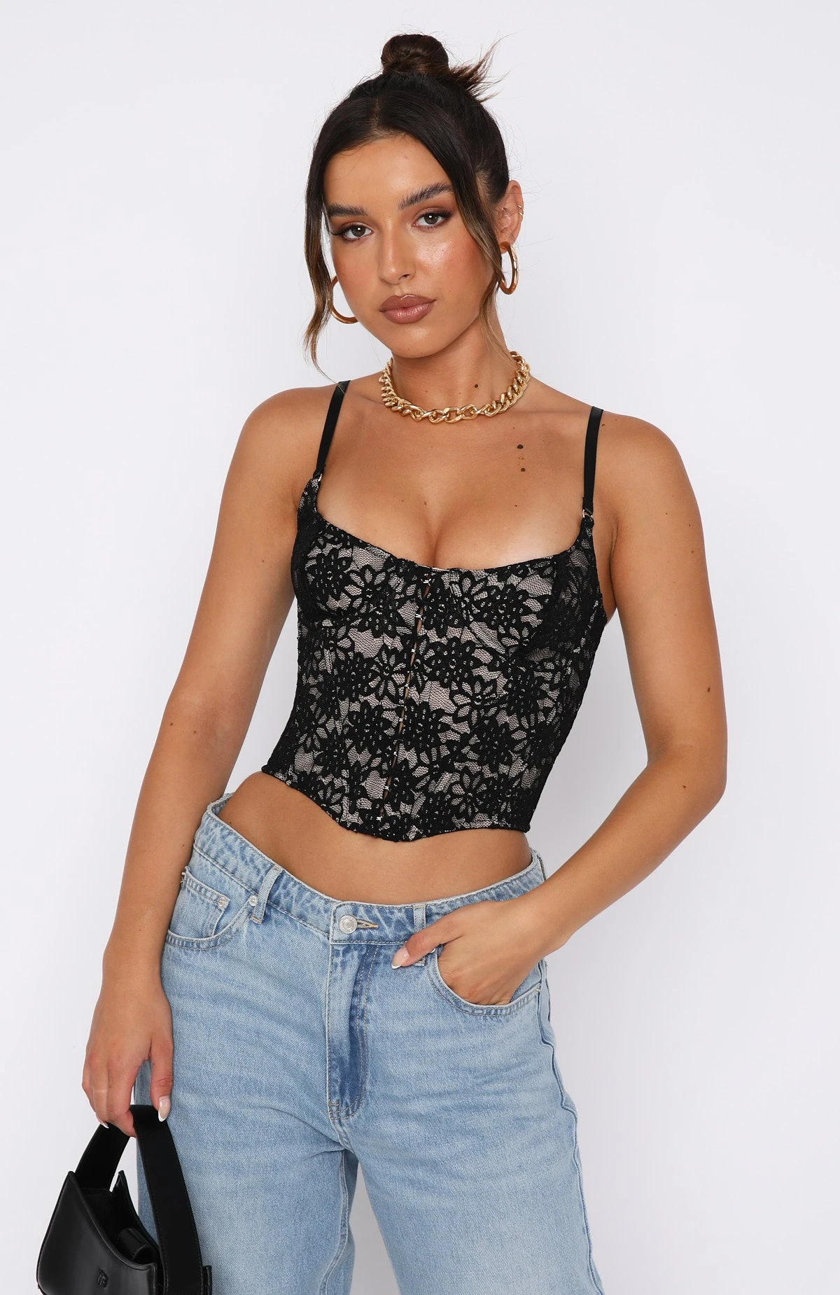 The Ordinary Life Bustier in Black is giving us major jeans and a cute top vibes! Featuring thin, adjustable straps, bust underwire, zipper centre back, hook and eye front closure, boning in bodice and lined fabric. Complete the look with your favourite White Fox Denim Jeans and gold accessories for a look we love!Â
