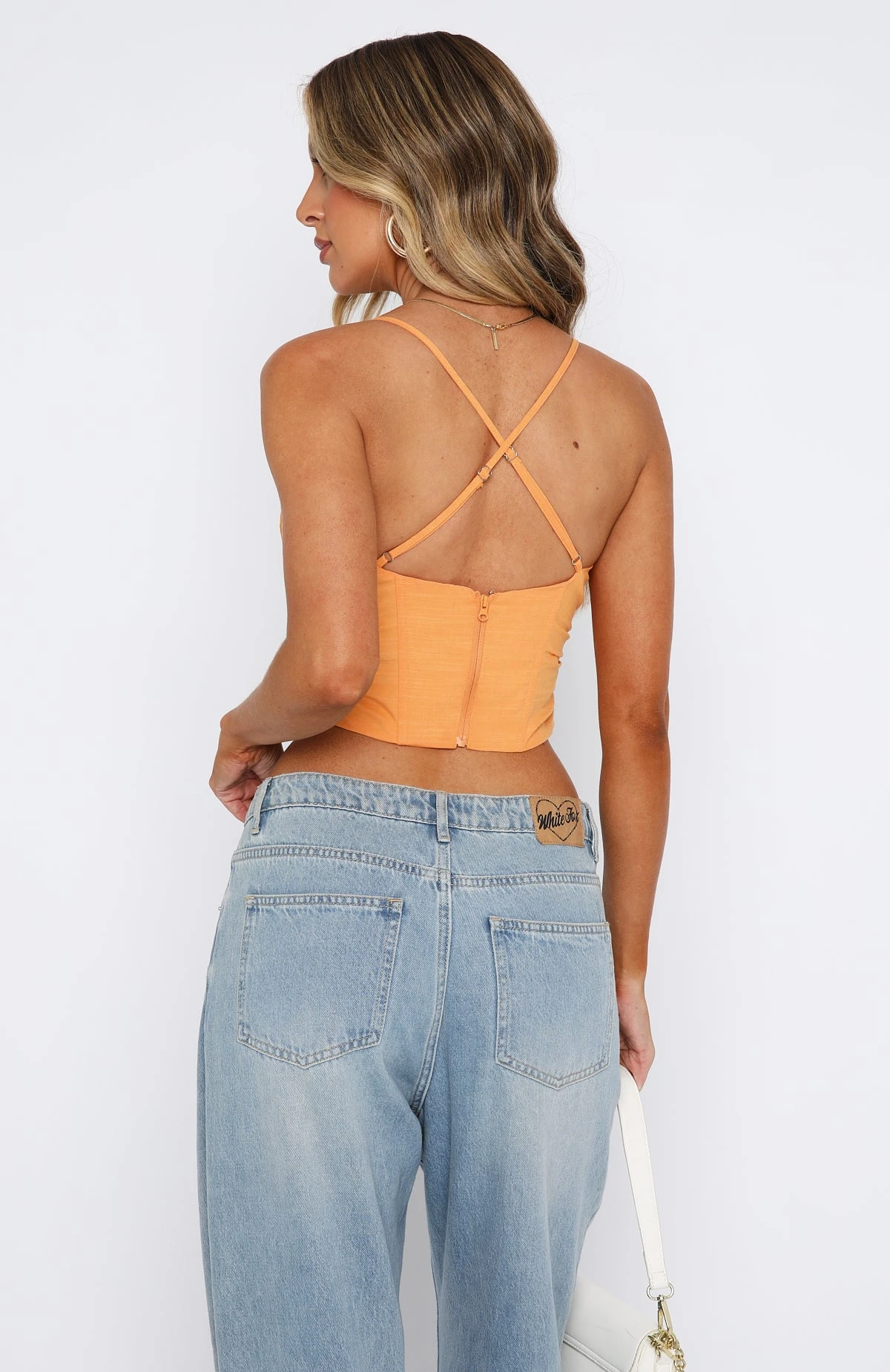 You’ll be looking dreamy in the Style Icon Bustier in Orange. Featuring halter neck style, cross-over back design, bust underwire, boning in bodice, invisible side zipper, curved edge and lined fabric. Pair with the matching Do It My Way Midi Skirt and perspex mules for a look we love!