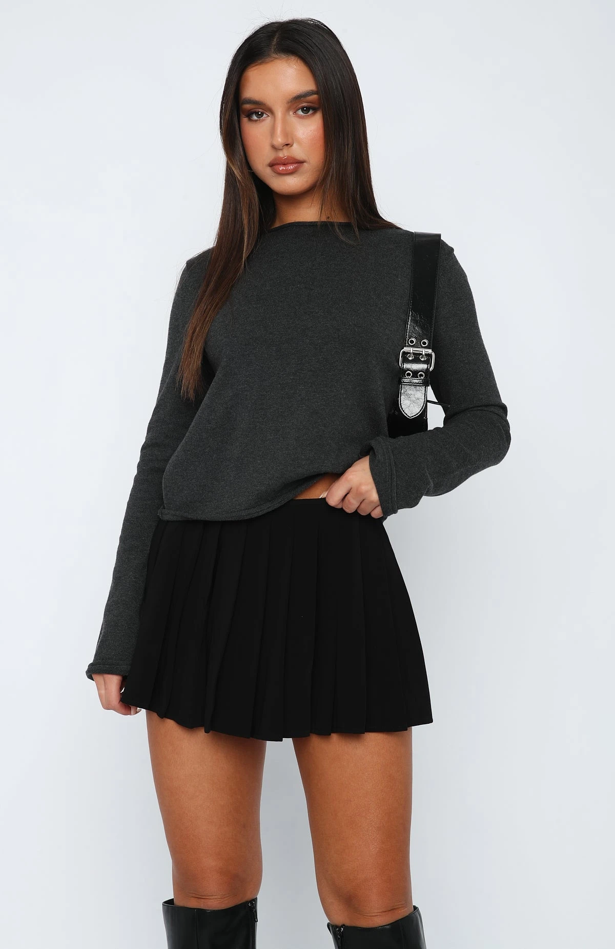 The Unique Love Sweater in Dark Charcoal is the elevated basic your new season wardrobe needs! Featuring a high neckline, long sleeves and soft, stretch fabric. We love this paired with your favourite pair of White Fox Denim Jeans and sneakers for the perfect weekend fit!